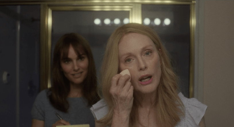 El melodrama no es la ruta que Secretos de un escándalo escoge, pero sí es una que claramente reconoce. El inicio de la película nos da una impresión totalmente opuesta, una de absoluta normalidad. Más de veinte años después de haber sido condenada por el abuso sexual del adolescente Joe Yoo, Gracie Atherton (Julianne Moore) se ha casado con él (Charles Melton interpreta al Joe adulto)–los nombres y detalles no coinciden con los del caso que lo inspiró; la respuesta a cómo hacer a una película sobre Mary Kay Letourneau es técnicamente no hacerla, sino inventar a alguien parecido a ella. Entre los invitados que Gracie y Joe reciben para una placentera barbacoa en su casa al lado del lago se encuentra Elizabeth Berry (Natalie Portman), una actriz y productora interesada en conocer más sobre su relación, pues interpretará a Gracie en una película independiente.