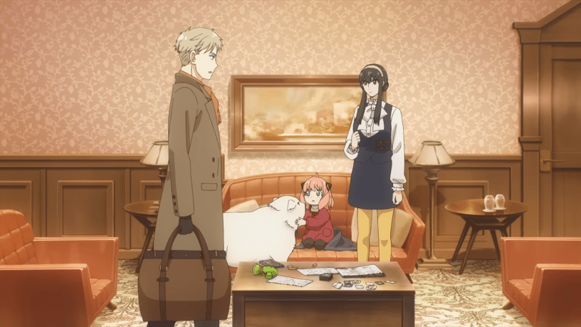 Esta primera parte de la película resulta la más sólida, pues está sintonizada a las fortalezas de la serie: las confusiones y engaños que surgen de cómo los Forger malabarean secretos, obligaciones profesionales y apariencias domésticas. Hay gran potencial en la duración más extendida (la película dura casi dos horas), pues estos hilos narrativos no tienen que cerrarse en los veinte minutos típicos de un capítulo de televisión sino que tienen la oportunidad de seguirse complicando y crecer hasta niveles más absurdos. Hay espacio para jugar con su elenco extendido: Nightfall (Ayane Sakura), una colega de Twilight que está perdidamente enamorada de él; Yuri Briar (Kensho Ono), el hermano de Yor que está un poco obsesionado con ella; y Franky (Hiroyuki Yoshino), un informante y amigo de Twilight que suele aparecer en capacidad de bufón.