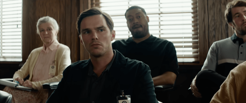 Mucho de este mérito le pertenece, no solo a Eastwood, pero también al guionista Jonathan Abrams, quien toma una intrigante premisa y la desarrolla con un cuidado especial para presentar la información, trazar los estados mentales de sus personajes y jugar con nuestras simpatías. Nicholas Hoult la protagoniza interpretando a Justin Kemp, a quien conocemos como un hombre bondadoso. Al inicio de la película, él acaba de arreglar el cuarto para el bebé que está por tener con su esposa, Allison (Zoey Deutch), quien parece totalmente agradecida y enamorada de él.
