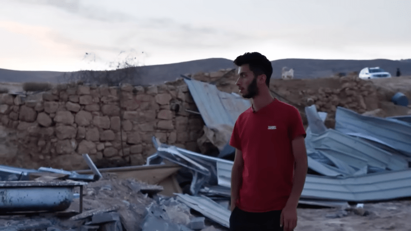 Esa resistencia diaria se convierte también en activismo, en acciones concretas y coordinadas. De noche y a espaldas del ejército, Basel y el resto de su familia reconstruyen sus casas. Continúan grabando lo que viven y lo difunden en redes sociales. Organizan protestas denunciando, no solo su desplazamiento forzado pero también el ataque a un familiar que, después de recibir disparos de las tropas, pierde sus funciones motrices.