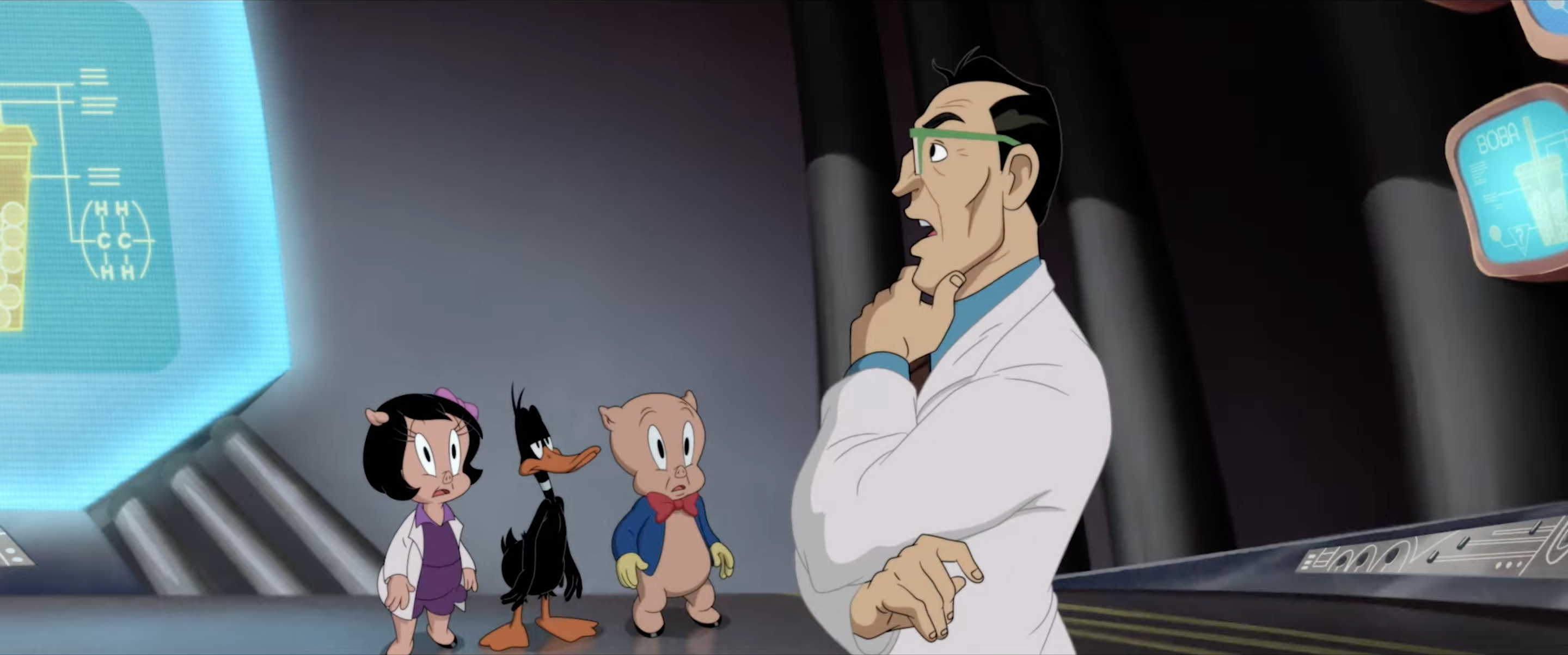 El director de la película es Pete Browngardt, animador mejor conocido por crear la serie de Cartoon Network Uncle Grandpa y por previamente revivir a los Looney Tunes en las caricaturas para Max Looney Tunes Cartoons, estrenadas entre 2020 y 2024. Browngardt y su equipo no se apega con absoluta fidelidad al tono y estilo de la época de oro de los personajes. Lucas, quien por parte importante de su duración trata de advertirle a la ciudad que el nuevo sabor de la fábrica de chicles contiene una sustancia de control mental extraterrestre y más adelante se deleita con hacer estupideces, no es la figura egoísta y orgullosa cuyo sufrimiento y frustración resultaban tan disfrutables en los cortos de antaño. Muchos de los chistes cambian el ingenio y la violencia clásica por humor escatológico. Vómito y mocos se vuelven parte importante de su trama o gags. El brevísimo intento de Lucas y Porky por convertirse en influencers puede sentirse como un intento desesperado por apelar al público actual, pero encaja con la tradición de los cortos originales de burlarse de lo que estaba de moda en su momento.