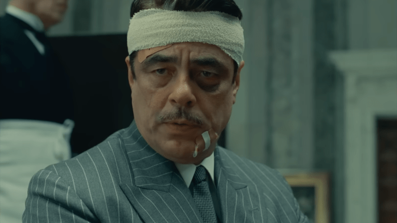 Pero el estilo de Anderson es preciso en más de una manera: complementa a los personajes y a sus dramas incluso cuando, a primera vista, juega en contra de ellos. Sus películas están tan llenas de detalles, pero prácticamente ninguno de ellos sale sobrando. Tómese como ejemplo el inicio de su película más reciente, El esquema fenicio. El rico industrialista Anatole “Zsa-Zsa” Korda (Benicio del Toro) vuela en un avión privado cuando la cola de éste explota de repente. Zsa-Zsa corre a la cabina, donde el piloto (Stephen Park) teme por su vida. Zsa-Zsa, frío y duro, lo despide, primero laboral y después literalmente eyectando su asiento. Anderson guía nuestra atención exactamente hacia donde quiere; ninguna toma o corte está de sobra. También prescinde de cualquier suspenso tradicional; todo pasa tan rápido que no tenemos tiempo de temer por las vidas de ambos. La historia profundizará más adelante en el personaje de Zsa-Zsa, pero estos primeros minutos nos hablan de él con una feroz y divertida eficiencia.